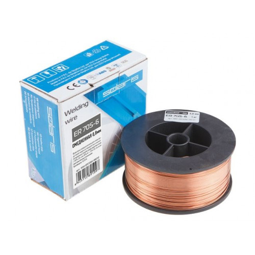 Проволока сварочная омедненная ER 70S-6 ф0,8мм (катушка D100 1 кг) SOLARIS