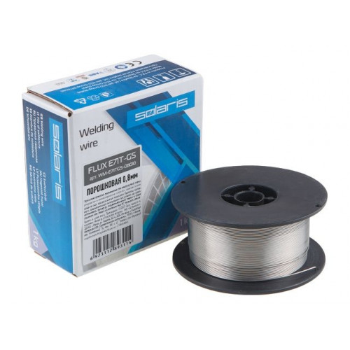 Проволока сварочная FLUX E71T-GS ф0,8мм (сварка без газа) (катушка 1кг) SOLARIS