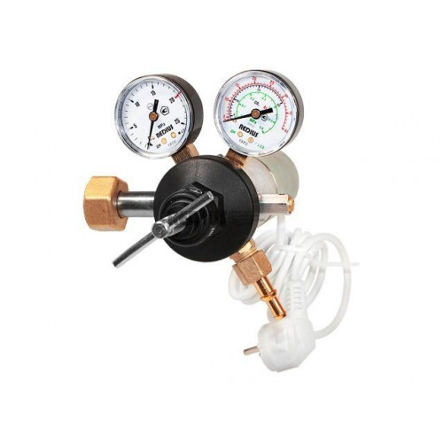 Регулятор расхода баллонный одноступенчатый предназначен для понижения и регулирования давления углекислого газа или аргона, поступающего из баллона, и автоматического поддержания постоянного рабочего расхода газа на выходе регулятора в ходе проведения работ. Подогреватель используется для предотвращения замерзания механизмов редуктора при больших расходах газа или при низких температурах окружающей среды. Подогрев осуществляется за счет теплообмена между газом и горячими стенками корпуса подогревателя.