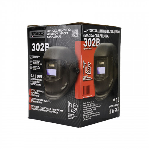 Сварочная маска BRADO 302B (1/1/1/2; 92х42мм; DIN4/9-13, шлифовка)