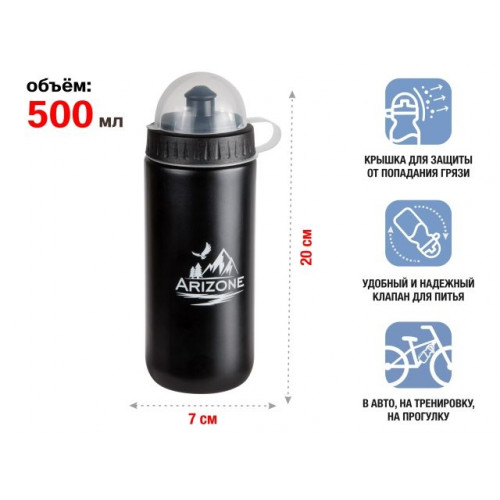 Бутылка для воды (фляга для велосипеда), 500 мл., черная, ARIZONE