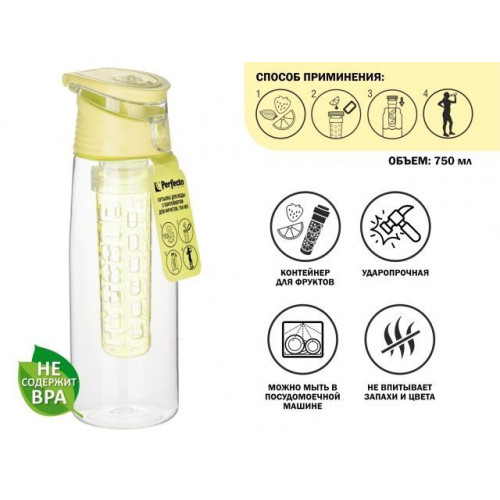 Бутылка для воды с контейнером д/фруктов, 750 мл, желтая, PERFECTO LINEA