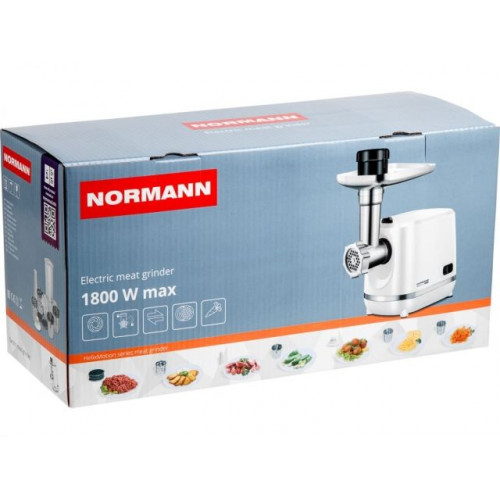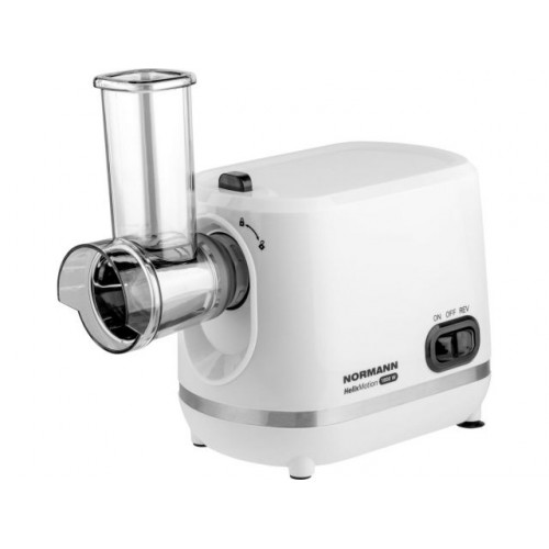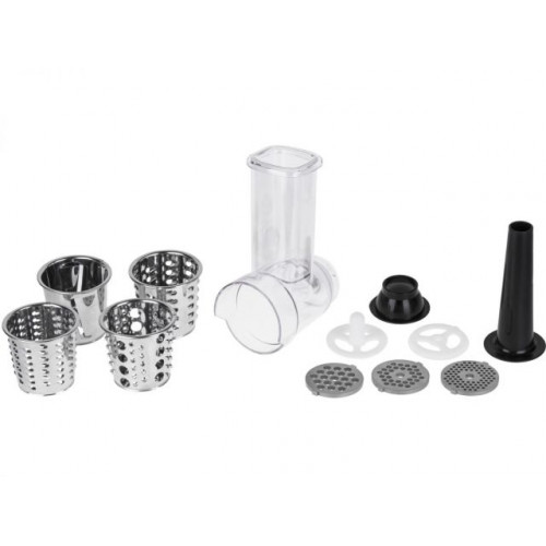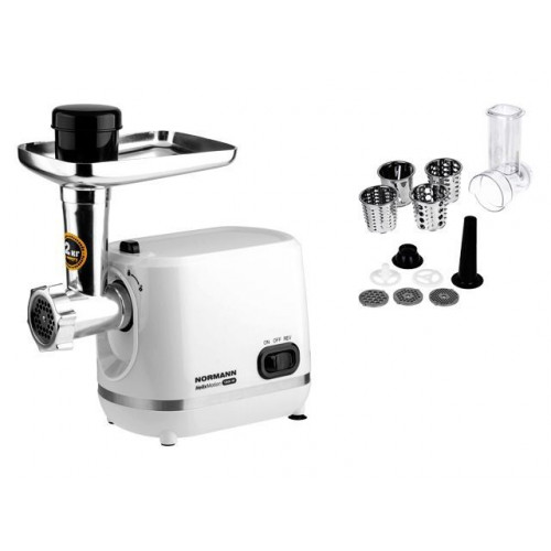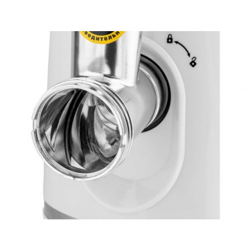 Производительная электрическая мясорубка с функцией реверса, удобной быстросъемной горловиной и теркой для овощей с насадками.