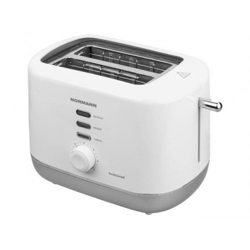 Функциональный тостер на 2 ломтика хлеба NORMANN Funktionell обладает всеми самыми необходимыми функциями для поджарки румяных тостов, такими как регулировка степени обжарки, подогрева и разморозки, функции досрочной отмены приготовления. Автоматическая центровка тостов позволяет равномерно прожарить тост любой толщины.
