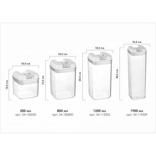 Банки для сыпучих продуктов прозрачные, имеют плотно закрывающиеся крышки, защищающие еду от влаги и посторонних запахов. В них удобно хранить крупы, специи, макаронные изделия, сахар, муку, бобовые.