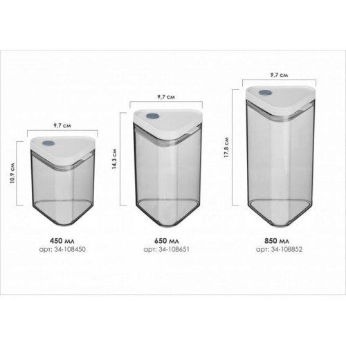 Контейнер для сыпучих продуктов удобно размещать в глубоком ящике кухонного стола, а так же ни отлично смотрятся на полке или столешнице. Контейнеры этой модели штабелируемые, что позволяет экономить место на кухне.