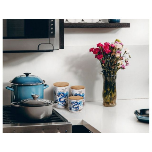 Банка украшена принтом дракона - символом плодородия, жизни, света, силы, мудрости, что делает ее отличным подарком для любителей азиатской культуры. Керамический материал обеспечивает сохранность вкуса и аромата продуктов, не вступая в химическую реакцию с ними, а также легко моется и сохраняет свою первоначальную внешность на протяжении длительного времени.