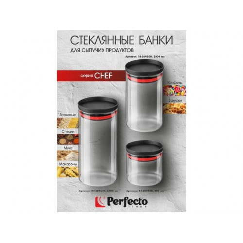 34-109140 Банка для сыпучих продуктов стеклянная 1300 мл, серия CHEF, PERFECTO LINEA,