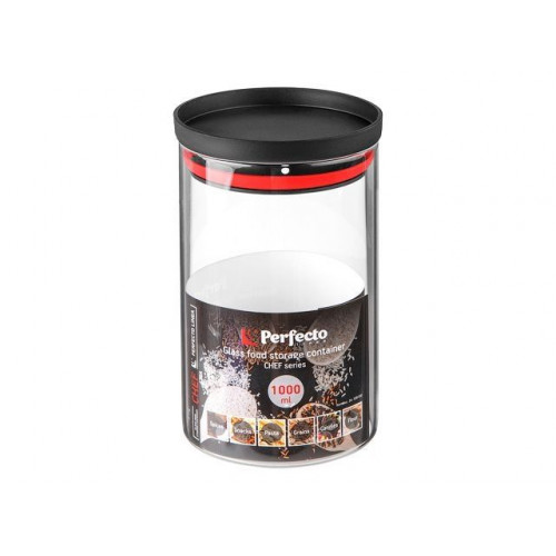Банка для сыпучих продуктов стеклянная 1000 мл, серия CHEF, PERFECTO LINEA