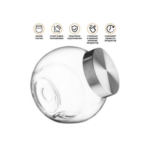 Банка для сыпучих продуктов стеклянная 1500 мл, серия Wella (Вэлла) PERFECTO LINEA