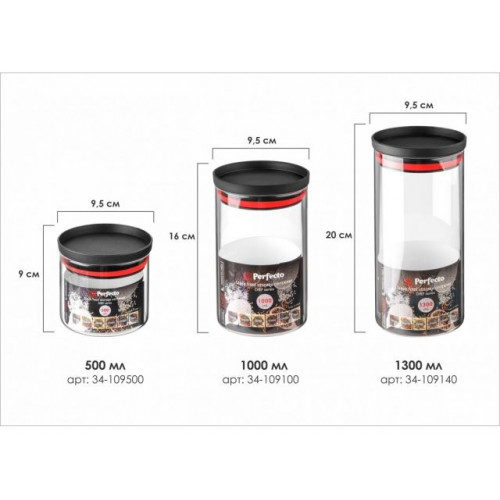 34-109100 Банка для сыпучих продуктов стеклянная 1000 мл, серия CHEF, PERFECTO LINEA,