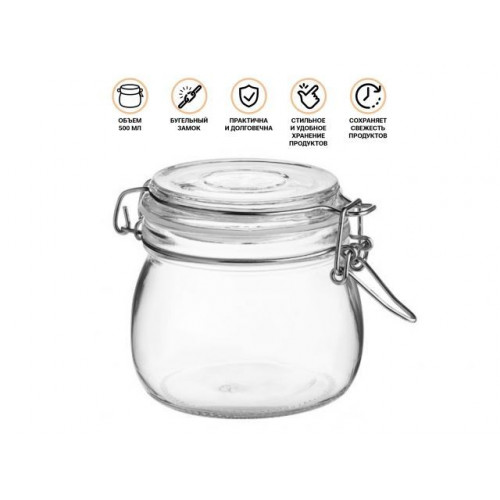 Банка с бугельным замком полностью герметична и не пропускает кислород, поэтому продукция не испортится длительное время.