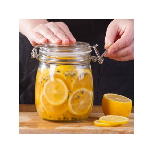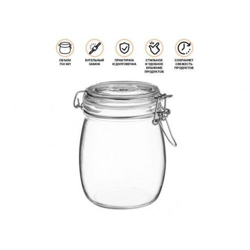 Банка с бугельным замком полностью герметична и не пропускает кислород, поэтому продукция не испортится длительное время.