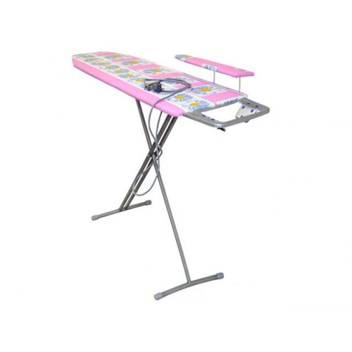 Четырехопорные металлические ножки с пластмассовыми наконечниками сохраняют надежную устойчивость доски и не царапают поверхность пола.Конструкция имеет двухступенчатую регулировку высоты. Чехол сшит из качественной хлопковой ткани, не желтеет и не линяет. В модели также есть съемный подрукавник для удобства глажения рукавов.