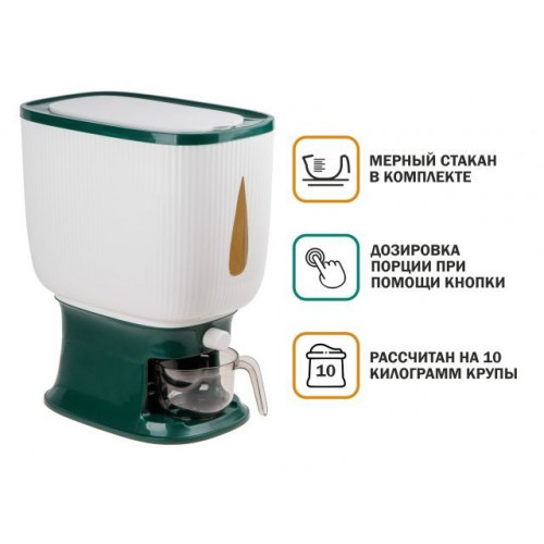 Контейнер для круп с дозатором, 10 кг, бело-зеленый