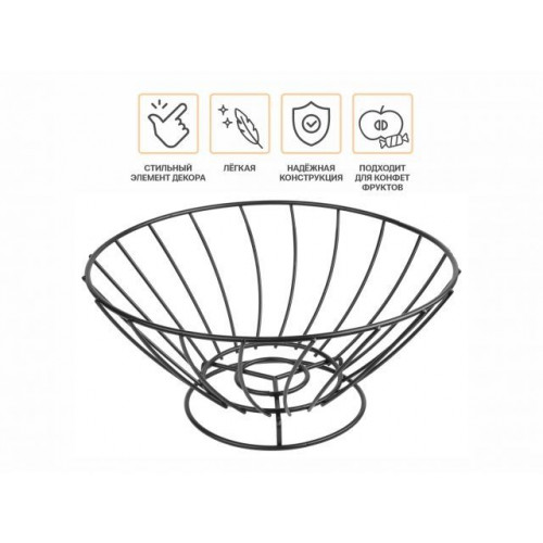 Корзина для фруктов имеет оригинальный дизайн, который запомнится Вашим гостям и станет украшением любого стола. Также благодаря конструкции менажницы в виде сетки, фрукты будут дольше оставаться свежими.