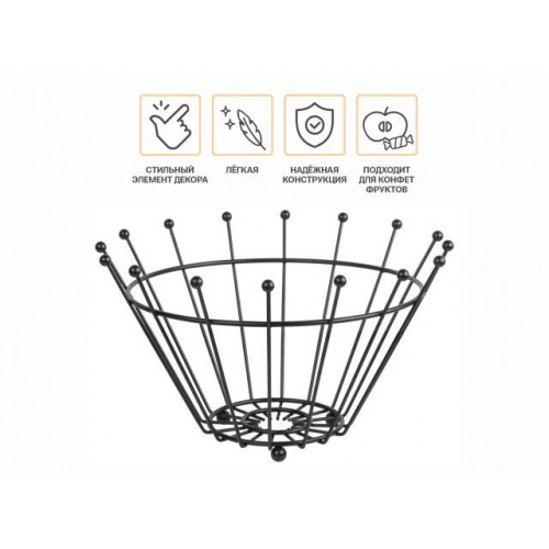 Корзина для фруктов имеет оригинальный дизайн, который запомнится Вашим гостям и станет украшением любого стола. Также благодаря конструкции менажницы в виде сетки, фрукты будут дольше оставаться свежими.