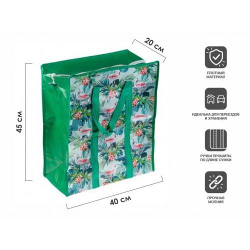 Плотная хозяйственная сумка. Предназначена для транспортировки разных грузов. Такие сумки используются как в логистике, так и в личных целях. Очень удобны для переездов. Сумка имеет укрепленные ручки и застежку-молнию, что сохраняет упаковываемый товар и вещи от грязи и пыли.
