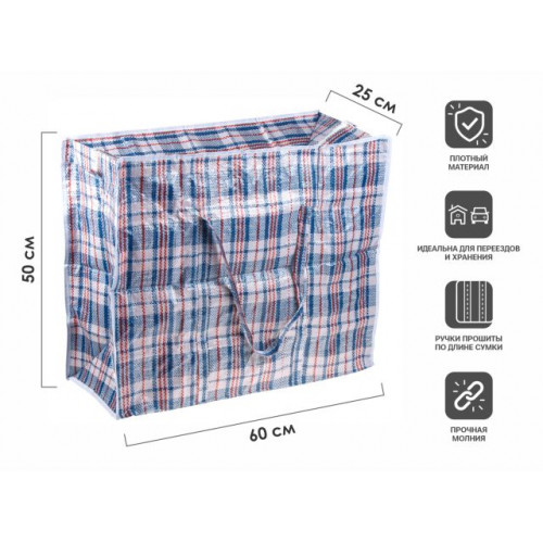 Плотная хозяйственная сумка. Предназначена для транспортировки разных грузов. Такие сумки используются как в логистике, так и в личных целях. Очень удобны для переездов. Сумка имеет укрепленные ручки и застежку-молнию, что сохраняет упаковываемый товар и вещи от грязи и пыли.