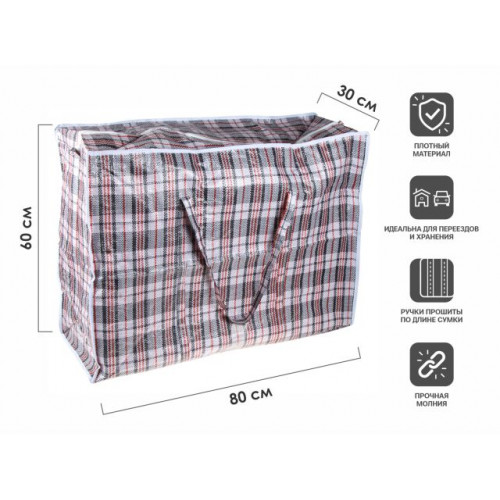 Плотная хозяйственная сумка. Предназначена для транспортировки разных грузов. Такие сумки используются как в логистике, так и в личных целях. Очень удобны для переездов. Сумка имеет укрепленные ручки и застежку-молнию, что сохраняет упаковываемый товар и вещи от грязи и пыли.