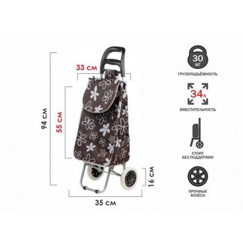 Сумка-тележка хозяйственная на колесах 30 кг, коричневая, цветы, PERFECTO LINEA
