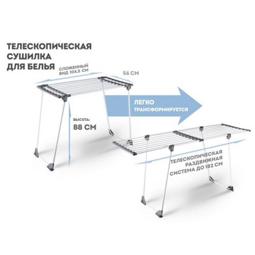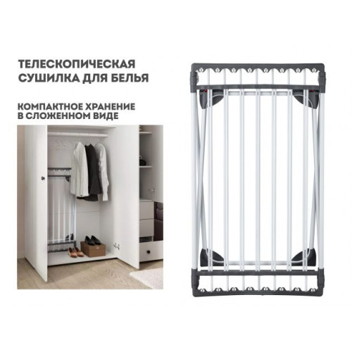 Сушилка для белья напольная, телескоп., 17м, серия Ruby, черно-белая, PERFECTO LINEA