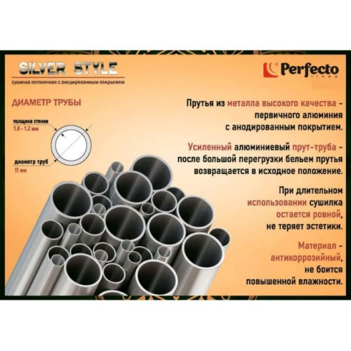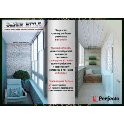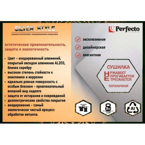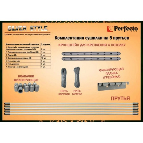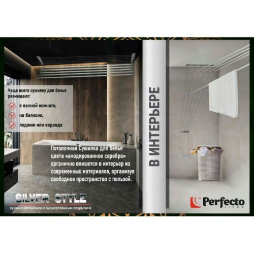 Сушилка для белья потолочная алюминиевая 1,8 м, 5 стержней, SILVER STYLE, PERFECTO LINEA