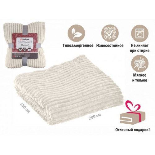 Покрывало флисовое 150x200 см., белое, серия Sleep mood, PERFECTO LINEA