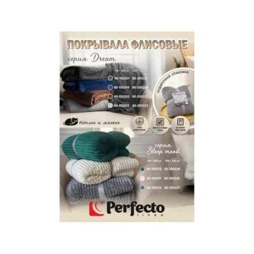 Покрывало флисовое 150x200 см., серое, серия Sleep mood, PERFECTO LINEA
