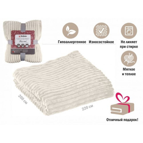 Покрывало флисовое 200x220 см., белое, серия Sleep mood, PERFECTO LINEA