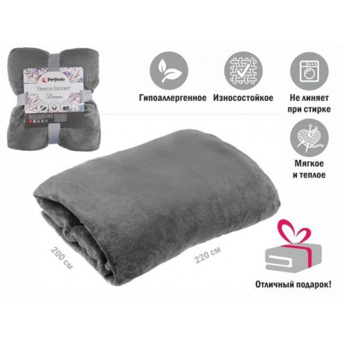 Покрывало флисовое 200x220 см., серое, серия Dream, PERFECTO LINEA