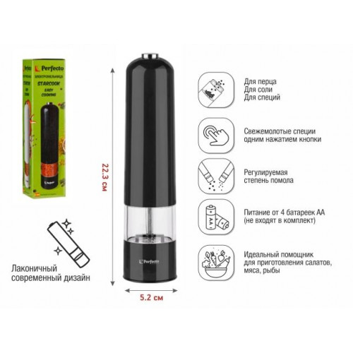 Электромельница, 5.2х22.3 см, чёрная, STARCOOK, PERFECTO LINEA