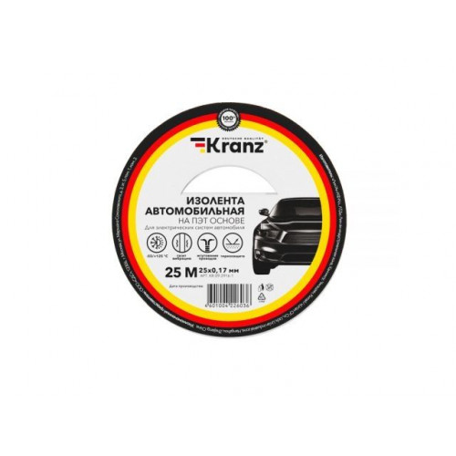 Изолента автомобильная полиэстер, 0.17х25 мм, 25 м KRANZ