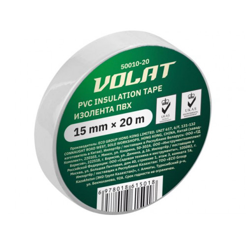 Изолента ПВХ 15ммх20м белая ВОЛАТ