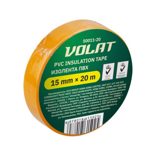 Изолента ПВХ 15ммх20м желтая ВОЛАТ