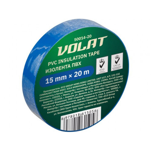 Изолента ПВХ 15ммх20м синяя ВОЛАТ