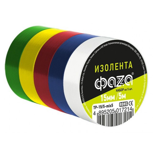 Изолента ПВХ 15ммх5м комплект 5 цветов ФАZА