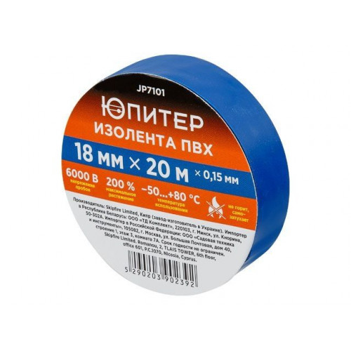 Изолента ПВХ 18ммх20м синяя ЮПИТЕР