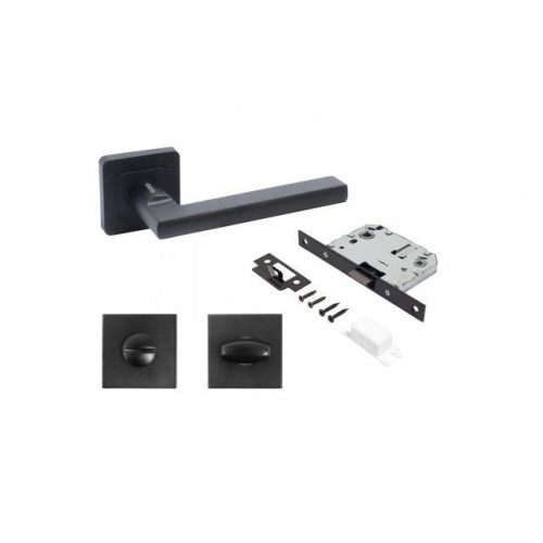 Комплект: ручка на квадратной накладке, сантехническая завертка и защелка с фиксацией .Материал ручек и завертки — алюминиевый сплав, защелки - сталь. Покрытие - полимерная краска. Комплектуются винтовыми стяжками и шурупами. Длина разрезного квадрата - 95мм. Для деревянных дверей, толщиной 35-40 мм. Гарантийный срок эксплуатации — 3 года.