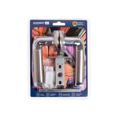 Комплект ручка и защелка АЛЛЮР АРТ "ПОЛО" SN/CP+L45-8 SN (1582/S45) мат.никель/хром (20) (компл)