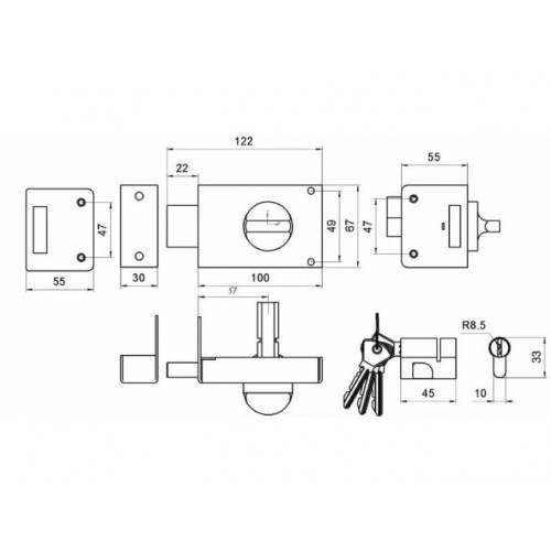 Оснащен двумя стальными ригелями диаметром 14 мм.