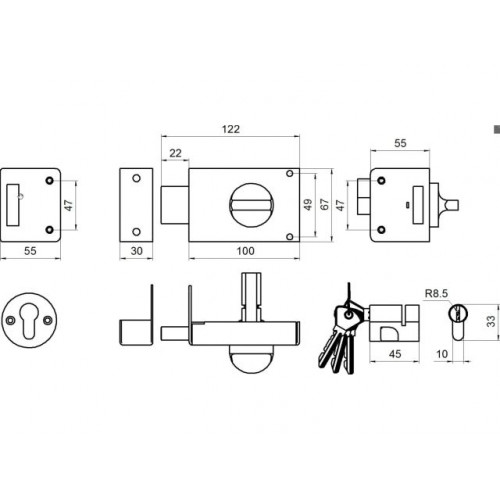 Накладной замок со стальным корпусом и засовом.