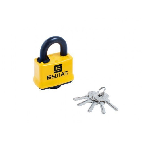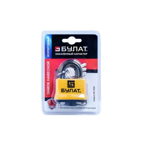 Замок навесной <БУЛАТ> предназначен для запирания, распределительных щитов, почтовых ящиков, гаражей, складов, подвалов и прочих помещений. Пластиковый кожух защищает замок от внешнего воздействия окружающей среды. Замок обладает длительным сроком эксплуатации. Гарантийный срок 5 лет с момента продажи через розничную сеть.