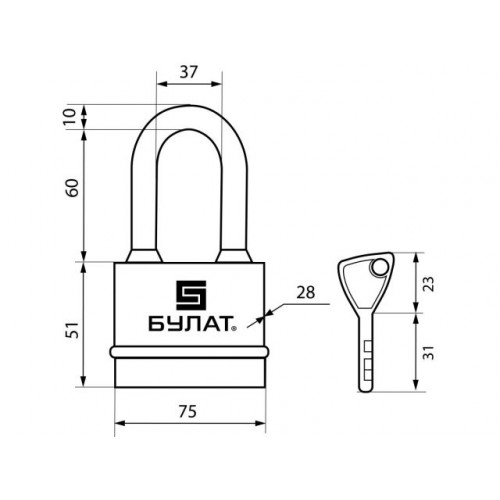 Замок навесной <БУЛАТ> предназначен для запирания, распределительных щитов, почтовых ящиков, гаражей, складов, подвалов и прочих помещений.