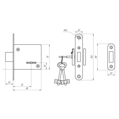 Замок врезной Омега ЗВ8-4 (3 ключа)