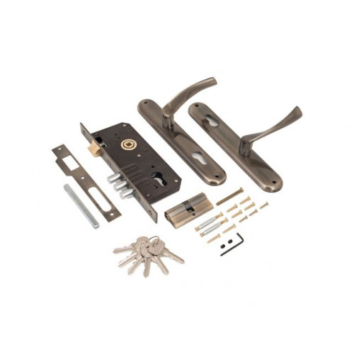 Комплектация: цилиндровый механизм 68мм, 6 ключей, ответная планка, винтовые стяжки.