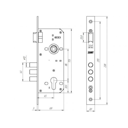 Замок оснащён цилиндром с уменьшенной высотой профиля и длиной 68мм.