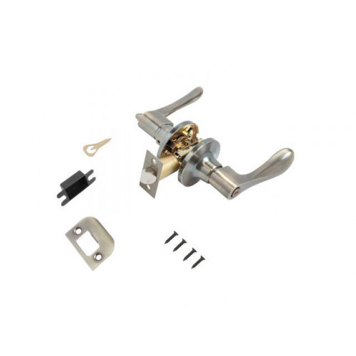 Ручка-защелка фалевая, нажимная для межкомнатных дверей . Материал ручек - алюминиевый сплав, накладок- сталь. Гальваническое покрытие. Предназначена для дверей толщиной до 40 мм. Регулируемое расстояние от края двери до оси ручек 60-70 мм. Скругленная защелка размерами 14х19 мм с вылетом 12 мм. Габариты корпуса врезной защелки 85х23х20 мм.
