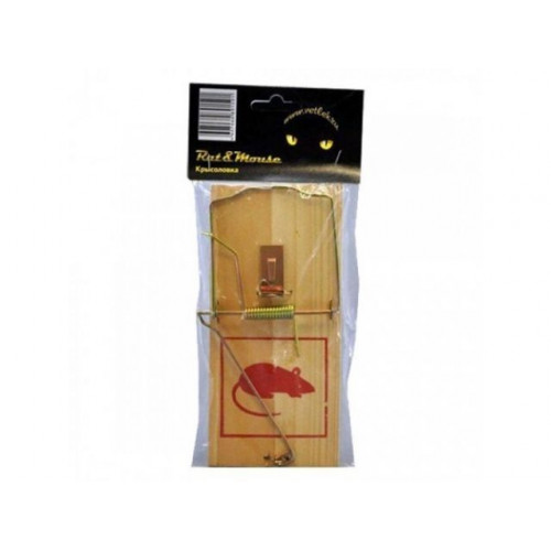 Крысоловка деревянная RatMouse простое и действенное приспособление для ловли грызунов, уничтожающих запасы сельскохозяйственной продукции, портящих домашнюю утварь. Устройство состоит из деревянной основы и простого металлического пружинного механизма, который грызун приводит в действие, прикасаясь к приманке.