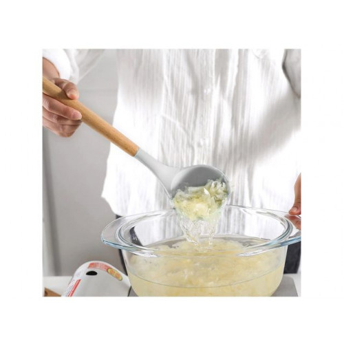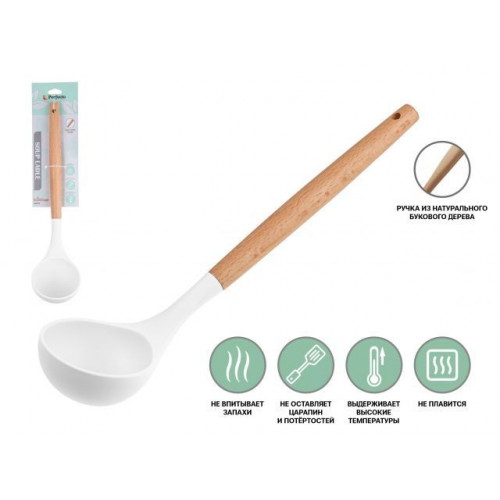 Черпак выполнен из материала, который выдерживает высокие температурные нагрузки и полностью безопасен для здоровья человека. Не повреждает антипригарное покрытие кастрюль и сковородок.